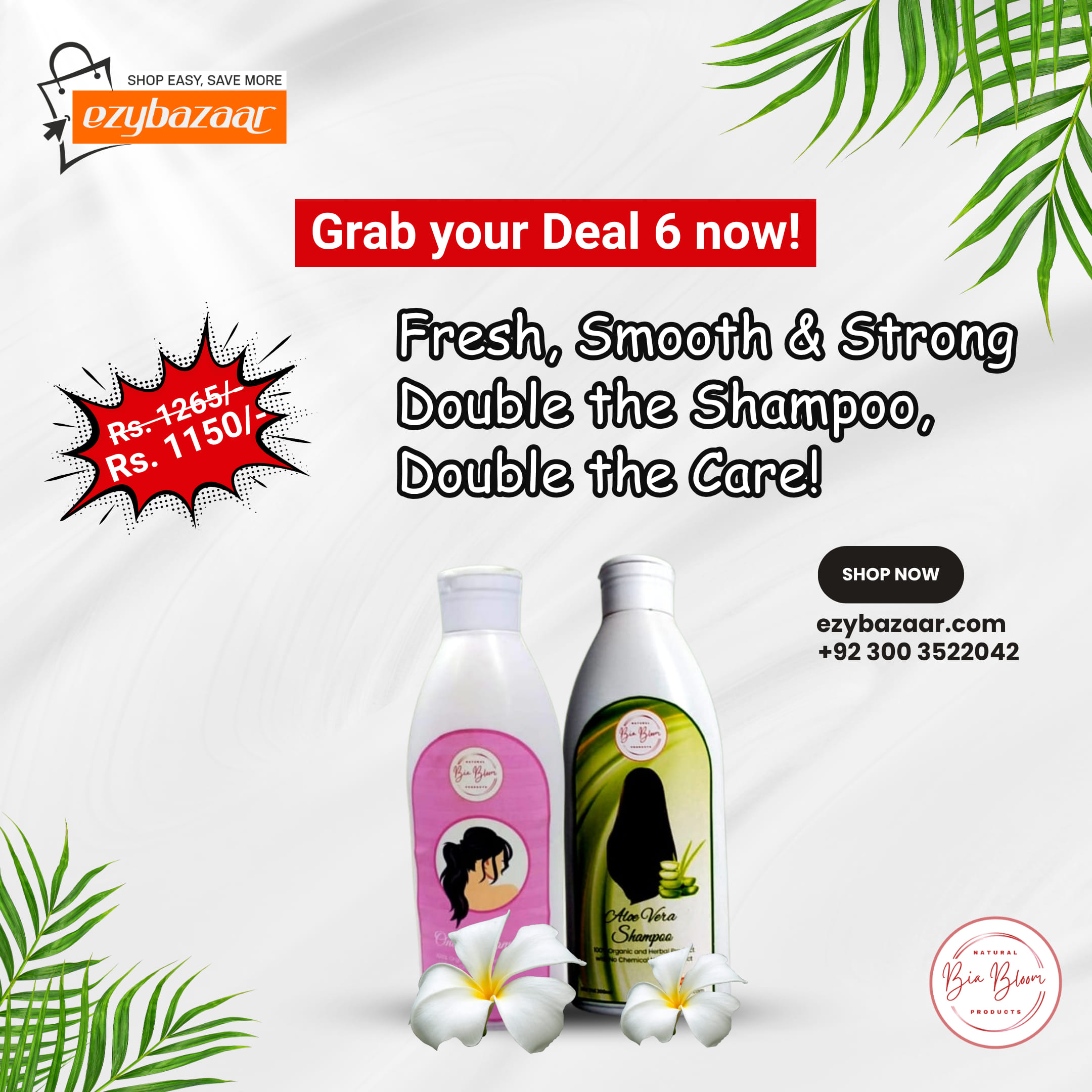 ₨ 690"Nourish your locks with Bia Bloom's 100% organic Aloe Vera Shampoo (200ml). Chemical-free, gentle, and effective for healthy hair and… -